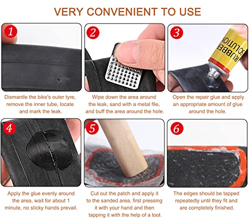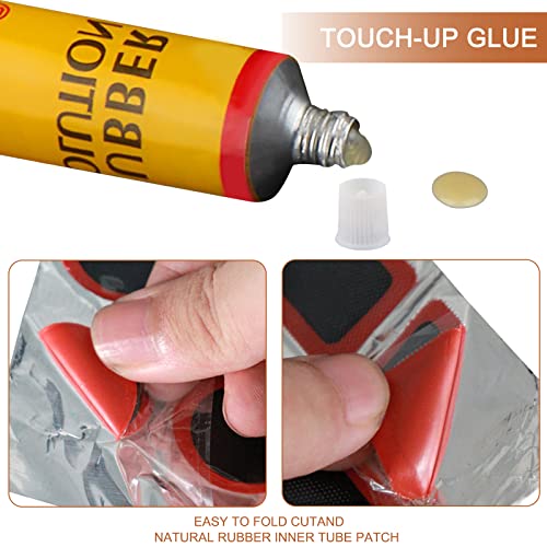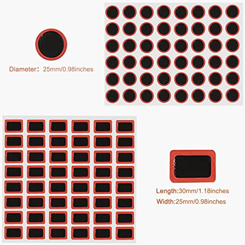 HKQP 96 Pezzi Kit di Riparazione per Pneumatici di Bici, Rotondo Kit di Toppe per Riparazione Camera d'Aria Quadrato Patch Gomma Bici per Riparazione di Pneumatici di Biciclette e Moto