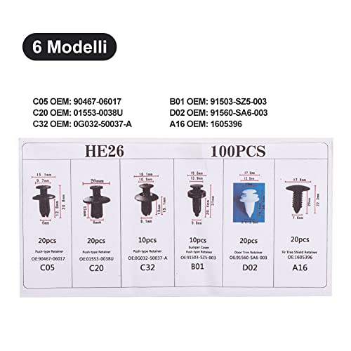 100 Pezzi Clip Rivestimento Pannello Porta Auto Fermo di Fissaggio per Paraurti Plastica Auto Fermo Portiera Durevole per Qualsiasi Tipo di Auto
