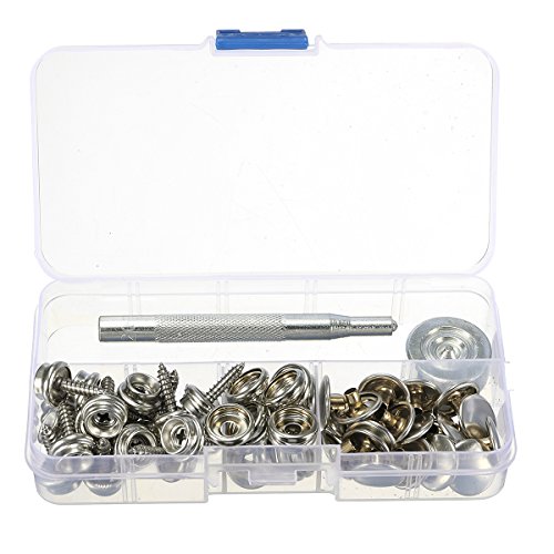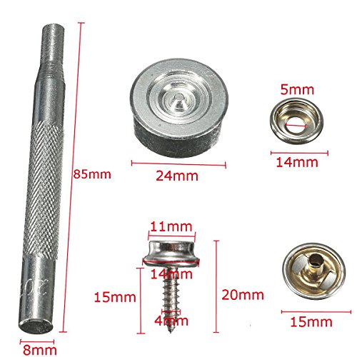 Set da 20 pezzi per rivetti e bottoni, 15 mm, in metallo, per cucire, con punzone, set in scatola