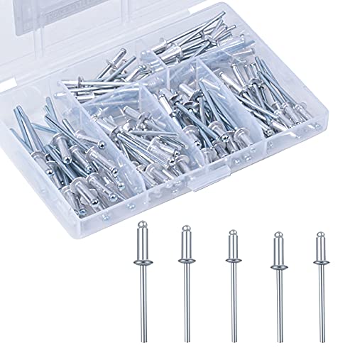 【Rivetti a testa da 120 pezzi】 Il nostro kit di assortimento di rivetti a strappo con custodia rivetti a strappo in alluminio per kit di assortimento di mobili, comunemente usato in rivetti pneumatici, rivetti elettrici, rivetti manuali. (M3.2 M4).