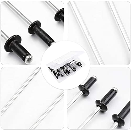【120 pezzi di rivetti neri】 Assortimento per rivetti pop Kit nero con custodia Rivetti pop in alluminio per mobili Kit assortimento comunemente usato in rivettatrice pneumatica, rivettatrice elettrica e rivettatrice manuale. (M2.4 M3.0 M3.2 M4).