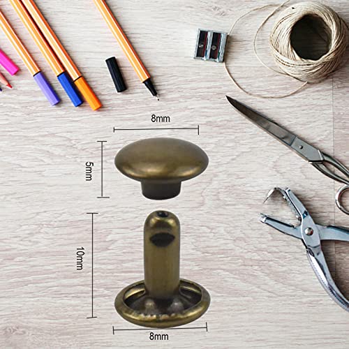 100 Pezzi Rivetti di Pelle Doppio Tappo Tubolare Rivettato, 8 mm Ribattini Viti Borchie per la Decorazione di Riparazione Artigianale