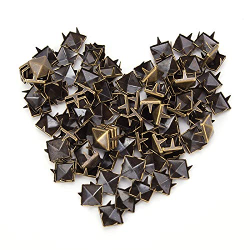 100 Pezzi Rivetti Quadrati 9 Mm, Perno Rivetto Punk a Forma di Piramide, 4 Rivetti Quadrati Artiglio Borchie in Rame per Decorazione Fai da Te(bronzo)