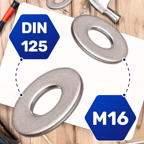 10 Pezzi Rondelle Acciaio Inox M16 Tipo DIN 125 - Garanzia di 10 Anni - MONTERAL