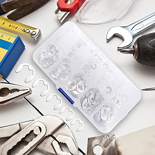 120 pezzi Rondelle di sicurezza per alberi Set E-clip in acciaio inossidabile Assortimento di anelli di bloccaggio con scatola (10 misure)