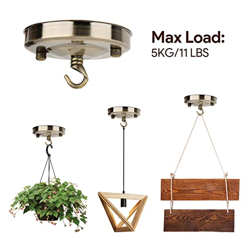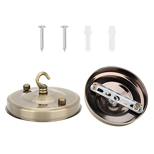 2 Pezzi Rosone da Soffitto con Gancio, Lampadario a Soffitto in Ferro Vintage con Piastra a Gancio Accessori per Lampade a Sospensione Multiuso(Bronzo)