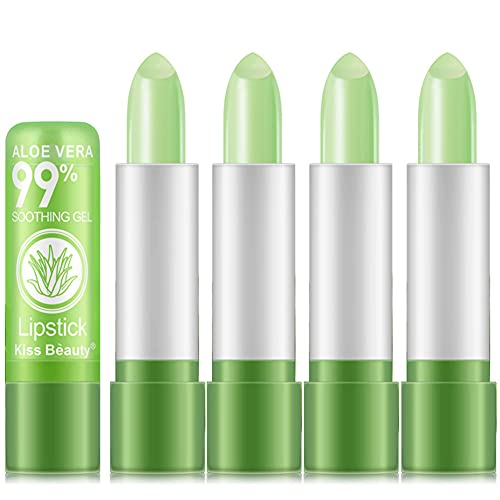 4 Pezzi Aloe Vera Rossetto, Rossetto Cambia Colore Balsamo per Le Labbra Con Cambio Colore Della Temperatura Magica, Trucco Labbra Nutriente a Lunga Durata Set Lucidalabbra Rossetto