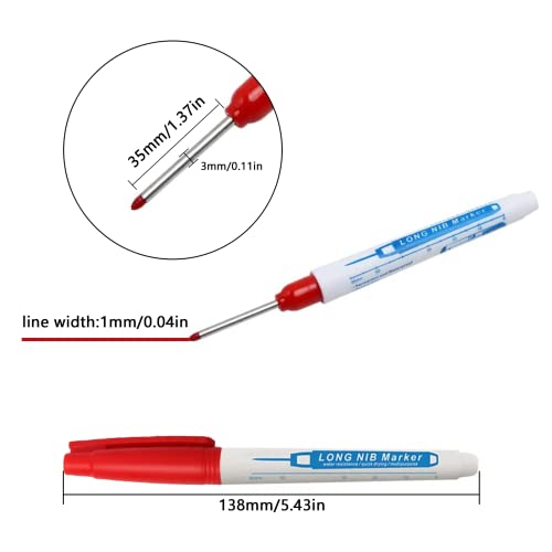 ✒Marcatore A Punta Lunga:L'pennarello indelebile punta fine ha una lunghezza della punta di 35 mm ed è progettato con una punta allungata per contrassegnare aree profonde o strette che non possono essere raggiunte con altri pennarelli. Ottimo per contrassegnare fori, piccoli oggetti o altre aree strette.