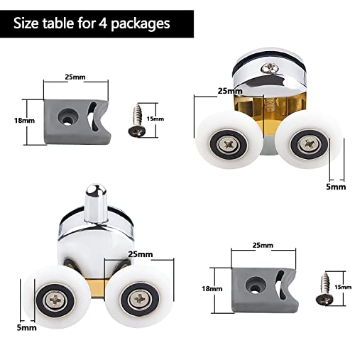 4 Pezzi Rotelle per Box Doccia, Rotelle Box Doccia Diametro e' 25 mm, Ruote Della Doccia per Vetro 4-6 mm, Parti di Ricambio Fai Da Te per Bagno Domestico (2 Rulli Superiori e 2 Rulli Inferiori)