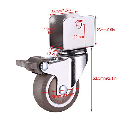 4 Pezzi rotelle Per Mobili con Staffa a Forma di U,Ruote In Gomma Mute con Freno,Ruote Girevoli a 360 °, per Mobili Carrello culla Armadio da Cucina,Carico 75 Kg(4 Swivel1.5inch -18mm)