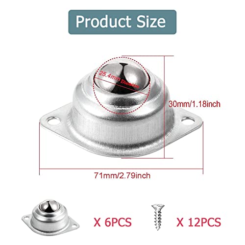 6 Pezzi Rotelle a Sfera per Mobili Pesanti, Cuscinetto di Trasferimento Universale, Ruote Sfera per Mobili, Unità di Trasferimento a Sfera, per Dispositivo di Trasferimento o Trasporto (25.4mm)