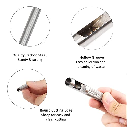 【Facile da usare】 Devi solo determinare la posizione del foro, quindi martellare direttamente la pelle con un martello.Una scanalatura sopra di essa per una facile raccolta e pulizia dei detriti di pelle, possono facilmente penetrare nel tessuto e aumentare la tua efficienza.