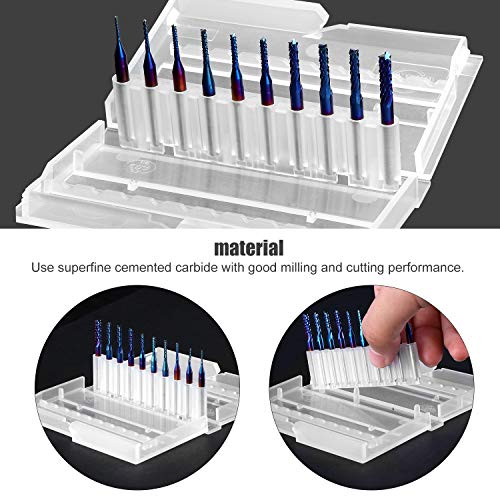 10 pezzi Nano Blue Coat End Mill Set CNC Router Bits, 1/8" Shank, 0.8-3.175mm