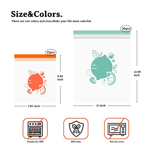 Multifunzione Sacchetti Freezer Riutilizzabili: Più facile da aprire e chiudere, la cerniera ermetica evita la fuoriuscita di oggetti liquidi e previene la miscelazione dell'odore di cibi diversi, puoi conservare la zuppa o il succo, ordinare e imballare gli alimenti.Sacchetti per la conservazione degli alimenti sono resistenti al calore e al freddo, resistono al calore e alle basse temperature (20 ℃ ~ 100 ℃). È possibile utilizzare celle frigorifere,congelamento e temperatura normale.
