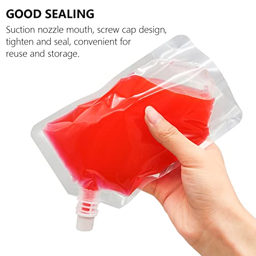 【Sacchetti per bevande non perdite】: ogni sacchetto per succo a prova di perdite ha un tappo a vite, che aiuta a sigillare, può essere congelato, può refrigerare le bevande in estate e non è facile da rompere.