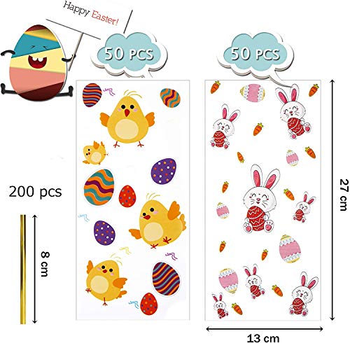 Xin 100 Pezzi Sacchetti di Cellophane Pasqua Trattare Sacchetti di Caramelle con 200 Pezzi Twist Tie Plastica Trasparente Borse di Caramelle per Dolcetti di Pasqua Candy Cioccolatini Biscotti