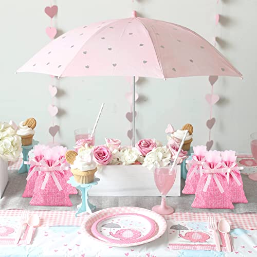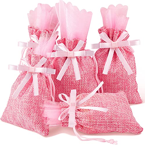 24 Pezzi Sacchetti Confetti Rosa 10X8cm con 24 Tulle Confetti e 22m Nastri Sachetti Iuta Bomboniere Battesimo Nascita Matrimonio