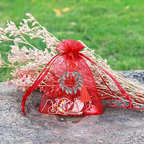 ☺ Materiale: questi sacchetti regalo sono realizzati in tessuto di garza. Sono leggeri, belli, resistenti e riutilizzabili. I ciondoli in lega di alloro sono infrangibili e durevoli. Grazie alla silhouette raffinata, possono essere combinati con frange rosse per essere utilizzati come decorazione su un'auto o uno zaino.