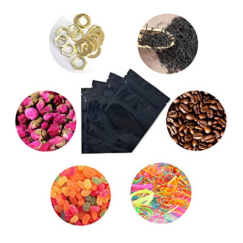 NA/ 200 Pezzi Sacchetti di Mylar richiudibili Neri, Sacchetti a Prova di Odore, Sacchetto di Lamina Borsa a Chiusura Lampo Piatta per conservazione di Alimenti per bomboniere (7.5 X10CM)