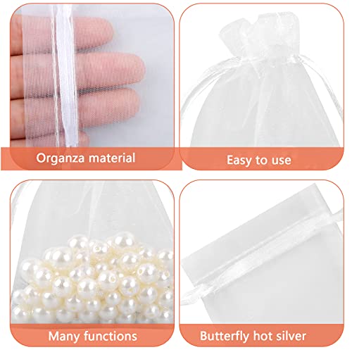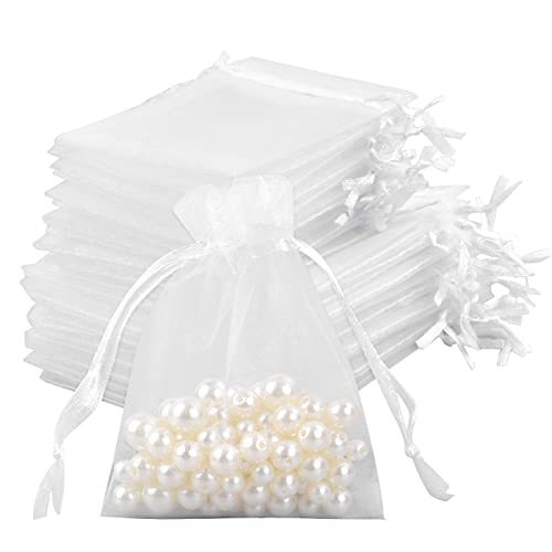 100 Pezzi Sacchetti in Organza, Sacchetti Bustina Organza Bianco, Borse Organza con Coulisse, Borsa da Matrimonio con Coulisse Borsa, Gioielli Sacchetto per Matrimonio Festa Favore, 7 x 9CM/10 x 12CM