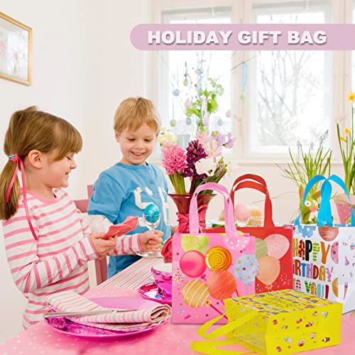12 Pezzi Sacchetti Regalo Compleanno, Medio Sacchetto di Festa Borsa non Tessuta Sacchetti di tote Riutilizzabili Resistenti All'acqua per Bambini Compleanno Festa