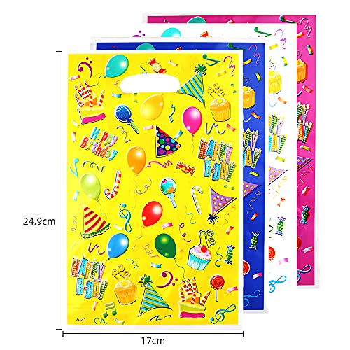 Contiene 60 pezzi di sacchetti regalo colorati e luminosi, 15x blu, 15x gialli, 15x lavanda, 15x bianchi, stampati con un cappello a palloncino di buon compleanno, candeline di caramelle, i diversi colori sono festosi e accattivanti.
