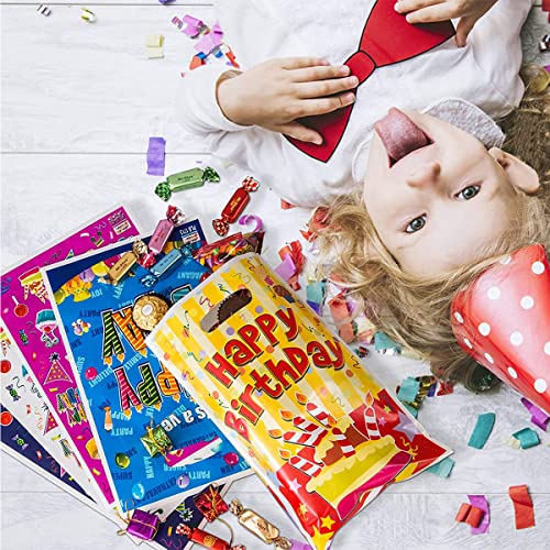 【Materiale】- Sacchettini Compleanno realizzati in materiale di alta qualità, di lunga durata, Non tossico e insapor, sicuri per i tuoi usi, riutilizzabili. Dimensioni: 25 x 16 cm, 50 pezzi di sacchetti regalo di buon compleanno in 5 diversi tipi di motivi (ogni motivo in 10 pezzi).