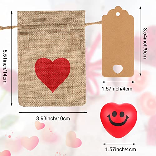 36 Pezzi Sacchetti Regalo con Coulisse di Valentine Borse per Bomboniere Personalizzate in Tela a Forma di Cuore con Etichette Palline Antistress Cuore Sacchetti di Nozze per Valentine