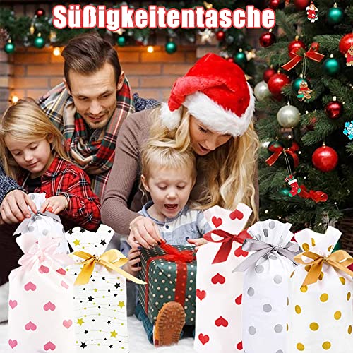 50 Pezzi Sacchetti Regalo con Nastro,5 Modelli Sacchetti Regalo con Coulisse di Natale,Sacchetti con Nastro per Caramelle,Sacchetti Caramelle Bambini,Sacchetto di Biscotti