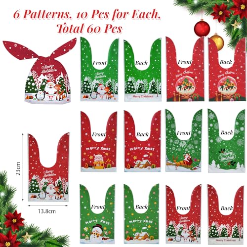 60 Pezzi Sacchetti Regalo di Natale, Sacchetti da Regalo, Sacchetti di Caramelle Con Orecchie da Coniglietto, Sacchetto Biscotti di Natale, Sacchettini Compleanno, Sacchetto Bustine Regalo Natale