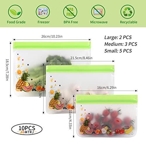 10 Pezzi Sacchetti Riutilizzabili per Alimenti, Sacchetti per Alimenti in Silicone, Sacchetti per Congelatore Riutilizzabili Senza BPA per Frutta Fresca, conservare verdure, snack, carne