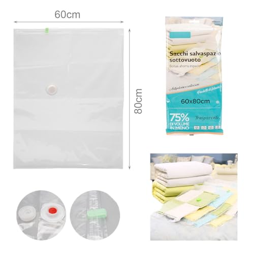 6 Pezzi Sacchetti Sottovuoto Vestiti, Buste Sacchi Sottovuoto Trasparente Per Vestiti Piumone (60X80cm)