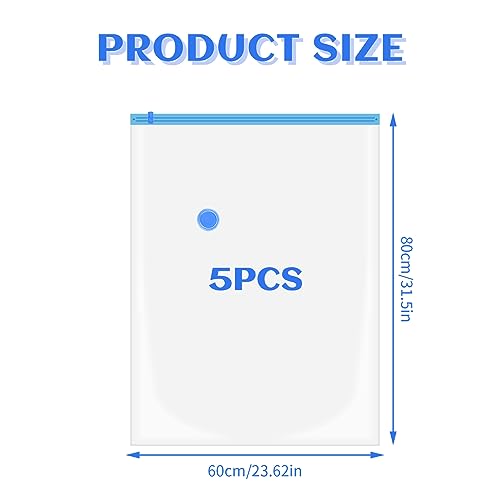 【5 sacchetti sottovuoto】 I sacchetti sottovuoto salvaspazio misurano 60 x 80 cm (23,62 x 31,5 pollici). Aiuta ad aumentare lo spazio di archiviazione e a rendere i tuoi armadi e guardaroba più puliti e ordinati;