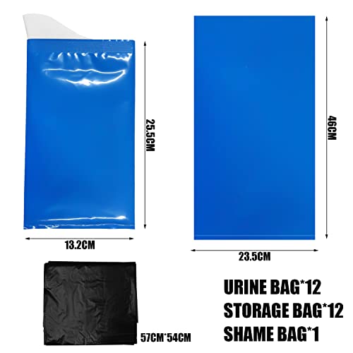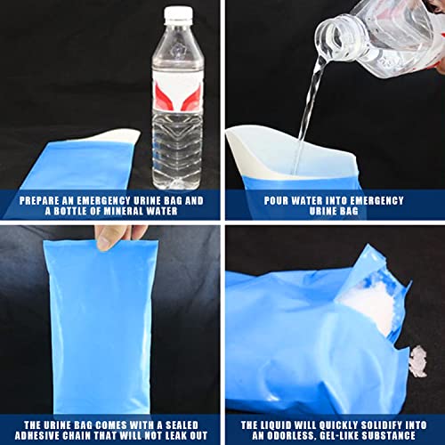 [Contenuto della confezione]: riceverai 12 sacchetti per urina di emergenza, di cui il colore del sacchetto per urina di emergenza è blu e la dimensione è di 13,2 x 25,5 cm. Il numero di set può soddisfare le tue esigenze per uso esterno.