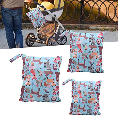 3 pezzi sacchetto bagnato asciutto, pannolino impermeabile panno umido sacchetto asciutto riutilizzabile borse per bambini con cerniera e bottone a pressione(Animale)