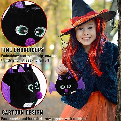 【3 Stili】I sacchetti di caramelle di Halloween hanno 3 diversi design, zucca, pipistrello, gatto nero. Ogni sacchetto di caramelle è progettato con una maniglia, facile da tenere o trasportare per i bambini.