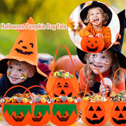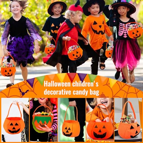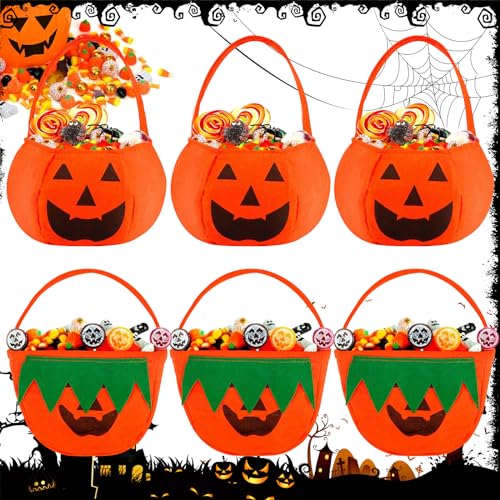 6 Pezzi Sacchetto di Caramelle di Zucca di Halloween, Manico Sacchetto Regalo con Zucca, Borsa Dolcetto o Scherzetto Halloween, Sacchetti Regalo Riutilizzabili, Sacchetti per Feste