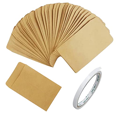 100 Pezzi Sacchetto di Carta Kraft Piccoli Mini Busta Pacchetti per Sacchetti Regalo Semi Monete Gioielli - con Nastro Biadesivo (8x12)