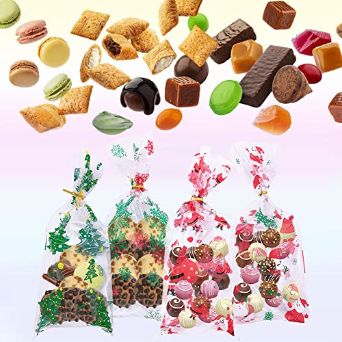 400 Pezzi Sacchetto Di Cellophane Sacchetto Regalo Di Plastica Trasparente Di Natale Caramelle Babbo Natale Albero Di Natale Pupazzo Di Neve Stampa Snack Bag Con Twist Per La Festa Di Natale