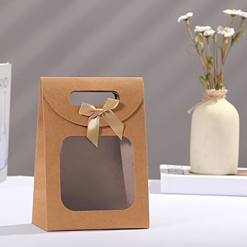 12 Pezzi Sacchetto Regalo con Finestra, Sacchetti di Carta Marrone, Marrone Sacchetto Regalo con Manico, per L'imballaggio Regali di Banchetto, Biscotti e Caramelle