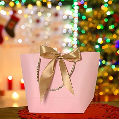 10 pezzi Sacchetto regalo, sacchetti regalo di carta con fiocco, eleganti sacchetti di carta del Regalo per compleanno, matrimonio, festa di laurea, sacchetti regalo fai-da-te (Rosa)