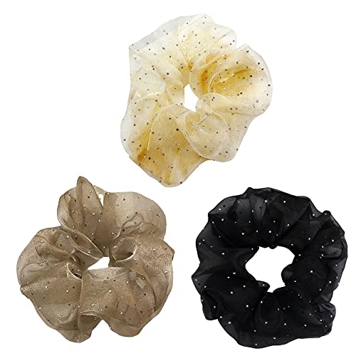 3 pezzi Satin Scrunchies per Capelli da Donna Seta elastica Elastici Capelli Fasce Ropes semplicità Elastico in Scrunchies Set Un pezzo di caffè nero beige Per lavoro viaggi scuola feste club