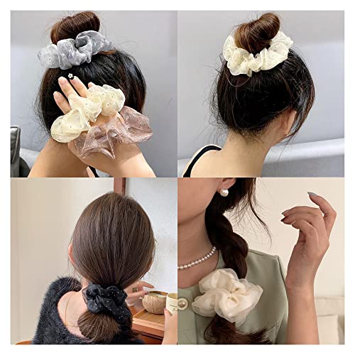 [Design semplice]-L'anello per capelli elastico in seta è disponibile in una varietà di colori tra cui scegliere, ci sono tre colori, che sono nero, caffè, beige, colori diversi puoi abbinare abiti diversi, partecipare a diverse attività quotidiane, in modo da avere più possibilità di scelta.