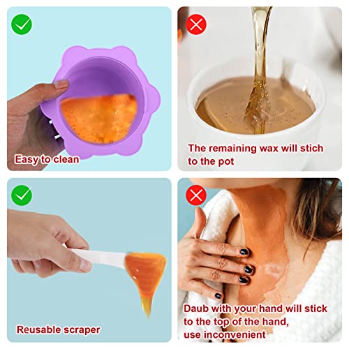 2 Pezzi Scaldacera in Silicone, Riutilizzabile Ciotola Silicone per Cera con 2 Spatole per Cera Antiaderente Fodere per Scaldacera per Scaldacera Da 16 oz per la Depilazione (Viola, Rosa)