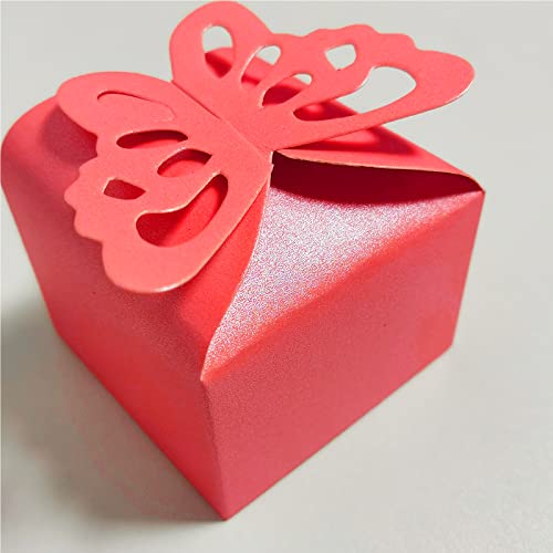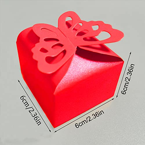 50 Pezzi Scatola di Caramelle a Farfalla, Scatole Bomboniere Farfalle, Scatole di Caramelle di Carta, per Compleanni, Feste, Festival Cibo, Shower e Matrimoni (Rosso)