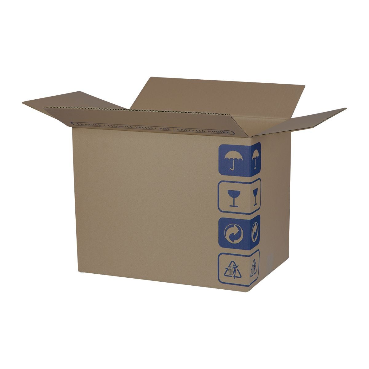 Set Composto da 50 scatole americane formato 47x31x37 cm. Scatole confezionate in cartone ondulato mono onda C fornite stese. Ideale per traslochi e per spedizioni