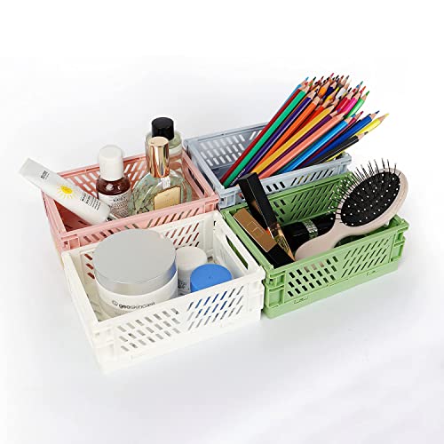 4 Pezzi Mini Scatola Pieghevole, Cassetta Plastica Pieghevole, Cassette Plastica, Scatola Pieghevole Piccola, Scatole Pieghevoli In Plastica Stabile 15 x 9.8 x 5.7 cm, per Cucina (Quattro Stili)