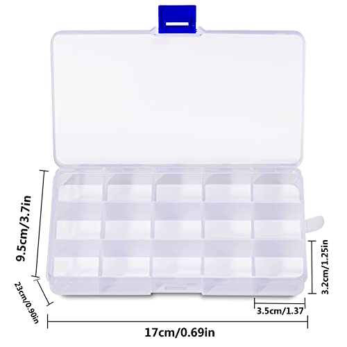 Il pacchetto include: otterrai 2 scatole di immagazzinaggio in plastica a 15 griglie di dimensioni 9,8 x 17,3 cm / 3,8 x 6,8 pollici;