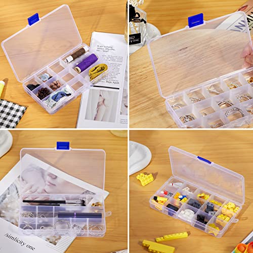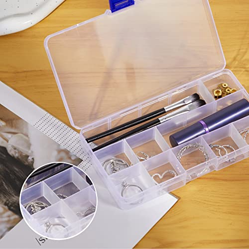 2 Pezzi Scatola in Plastica con15 Scomparti, Scatole Contenitori Trasparenti Organizer con Divisori Regolabile, Scatola Portaoggetti per Gioielli Perline Orecchino Viti Piccoli Accessori