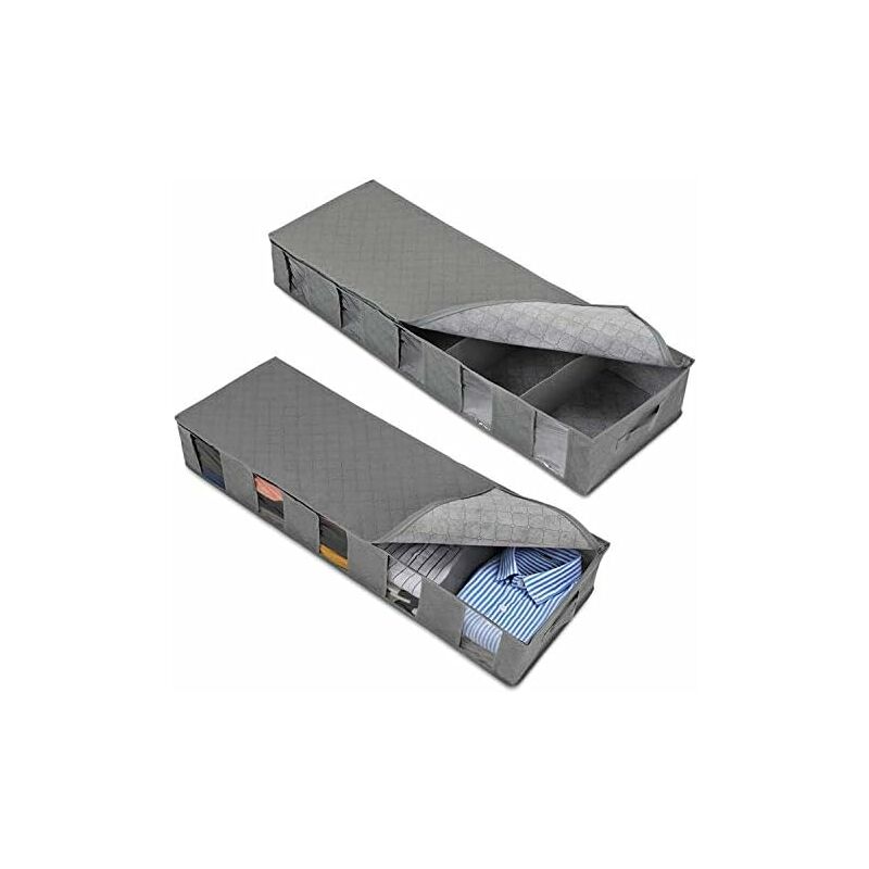 DUREVOLE: le fodere sono realizzate in tessuto rigido, resistente e impermeabile. Con il coperchio e il sacco sottovuoto inclusi, questo permette una doppia saldatura proteggendo i vestiti dalla polvere o dalla crescita batterica.FACILE CONSERVAZIONE: L'ampia apertura trasparente del coperchio rende facile identificare il contenuto senza dover aprire il coperchio e garantisce polvere -spazio di archiviazione gratuito. Inoltre, le coperture sono facili da spostare grazie alle maniglie sui lati. VERSATILE: È pieghevole per non occupare spazio quando non la usi. Sono perfetti per il dormitorio, l'attico, il seminterrato e la camera da letto. Protezione e apertura: protegge gli indumenti dagli effetti dannosi di luce e polvere grazie al suo design in fibra di polipropilene non tessuta, ampia apertura con cerniera a tutta lunghezza per facilità d'uso OPZIONE DI CONSERVAZIONE MULTIUSO: questa custodia sotto il letto si adatta perfettamente sotto il letto e può essere impilata sopra l'altra.
